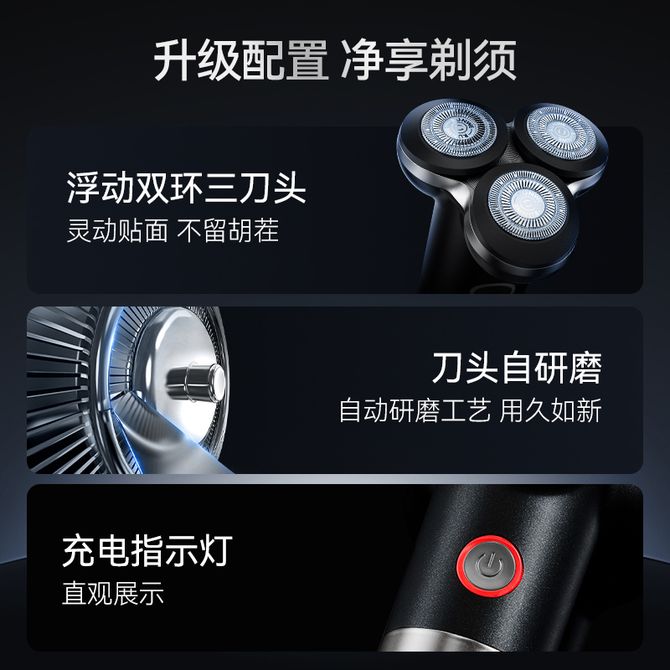组合销售 产品介绍 产品规格 售后服务 产品咨询 发现好货 朗威 三头电动剃须刀 男士充电式电动刮胡刀Rs935 2200 里程 映趣 电动剃须刀男士刮胡刀充电式三刀 BlackStone黑色 3100 里程 飞利浦/Philips 电动剃须刀 S2509/S2508 三刀头 1小时充电 全身水洗 男士电动剃须刀胡须刀干湿两用须刨高效闪充 11700 里程 朗威 剃须刀电动剃须刀充电式刮胡刀电动男士双头浮动胡须胡子刀 RS182 1100 里程 小米 电动剃须刀小巧便携刮胡刀 Type-c充电全身水洗低噪音充电式胡须刀S100 4000 里程