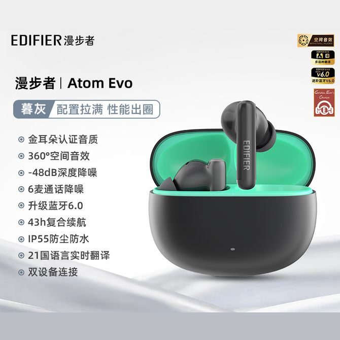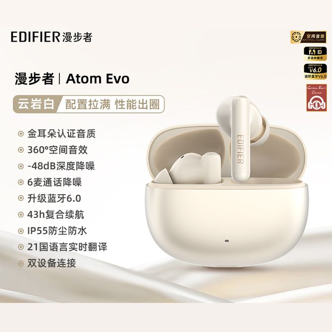 漫步者/EDIFIER 真无线深度降噪蓝牙耳机 入耳式HiFi音质耳麦 同声传译长续航手机耳塞AtomEvo 双复合强磁动圈HiFi音质,空间音效,混合深度降噪,6麦通话降噪,蓝牙6.0,长效续航,游戏低延迟,多EQ音效,IP55防尘防水,APP多语种翻译 兑换价格 12800 里程 会员卡别 终身白金卡 白金卡 金卡 银卡 普通卡 儿童卡 服务 由 智科精品 发货并提供售后 颜色: 黑色 象牙白色 紫罗兰色 购买数量: 件 库存件 配送地址: 立即购买 加入购物车 成功添加到购物车 关闭 购物车共有 种商品 总金额为: