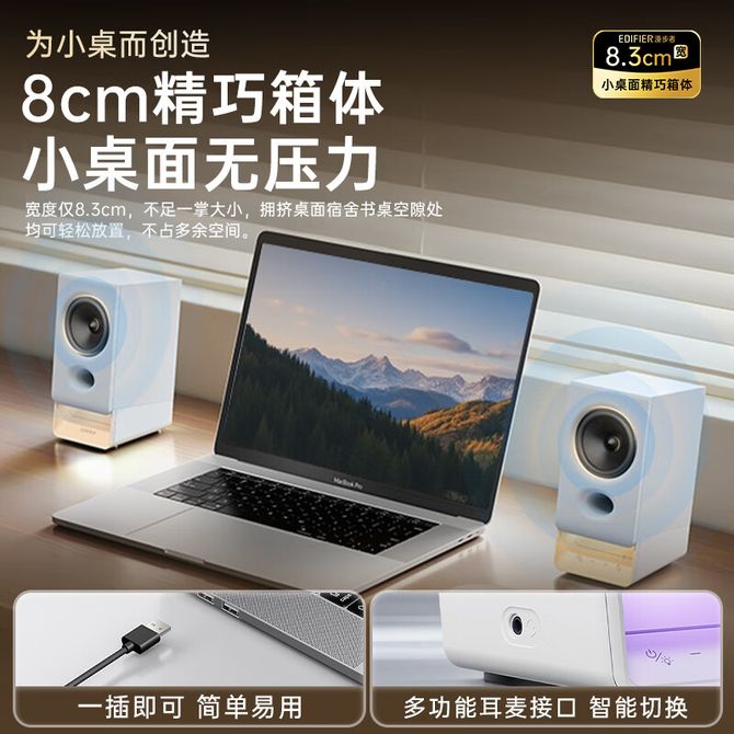 组合销售 产品介绍 产品规格 售后服务 产品咨询 发现好货 漫步者(EDIFIER) R12U台式电脑音响低音炮手机迷你笔记本小音箱USB 台式/笔记本音响 支持USB 时尚外观设计 4000 里程 漫步者(EDIFIER) R10U台式/笔记本电脑USB小音箱 迷你音响 多媒体桌面数码低音炮 3500 里程 漫步者(EDIFIER) R101V多媒体有源音箱2.1声道电脑音响 桌面重低音炮 6500 里程 纽曼(Newmine)N63收音机半导体唱戏机评书戏曲插卡音箱音响 2200 里程 小米 小爱同学音箱Play基础款 AIoT语音控制 蓝牙Mesh网关 音乐小说智能音箱智能音响 4800 里程
