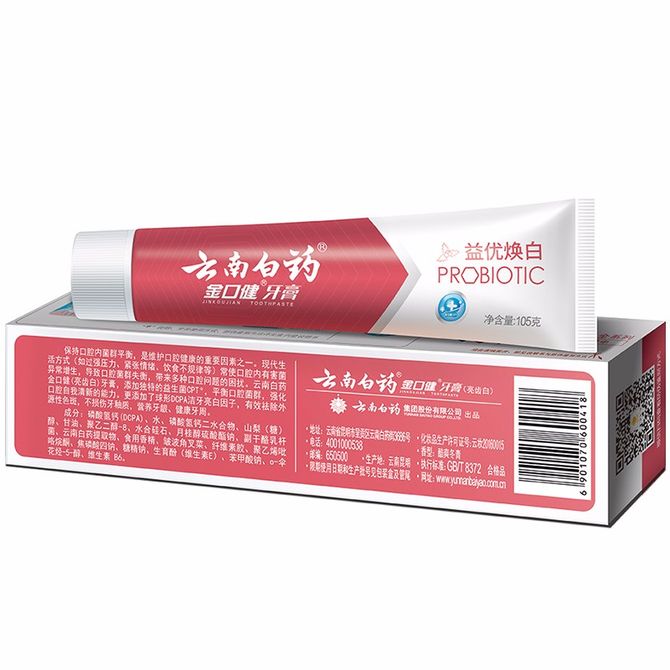 云南白药 牙膏 益优焕白105g 新口气呵护牙龈健康 含云南白药活性成分,护龈洁齿,强健口腔 兑换价格 1500 里程 会员卡别 终身白金卡 白金卡 金卡 银卡 普通卡 儿童卡 服务 由 云尚优品 发货并提供售后 化妆品容量: 其他容量 购买数量: 件 库存件 配送地址: 立即购买 加入购物车 成功添加到购物车 关闭 购物车共有 种商品 总金额为: 组合销售 产品介绍 产品规格 售后服务 产品咨询 发现好货 云南白药牙膏单支清新口气呵护牙龈健康牙周冬青 活性肽165g 1500 里程 云南白药 健齿护龈改善牙龈问题清新口气留兰香型180g 1500 里程 云南白药牙膏留兰香型180g 去黄牙垢口气清新减轻牙龈问题 1500 里程 云南白药 牙膏(薄荷清爽)230g 单支装 清新口气健齿护龈 经典清爽薄荷香型牙膏 1支装 1600 里程 舒客专效防蛀氟素牙膏(清新薄荷)140g*3防蛀固齿呵护口腔清新口气 1100 里程