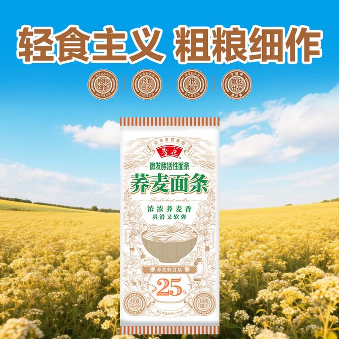 鲁花 荞麦面条(25%)600g*2 微发酵活性荞麦面条(25%)新老包装随机发货 兑换价格 1700 里程 会员卡别 终身白金卡 白金卡 金卡 银卡 普通卡 儿童卡 服务 由 全食行 发货并提供售后 规格: 袋装 购买数量: 件 库存件 配送地址: 立即购买 加入购物车 成功添加到购物车 关闭 购物车共有 种商品 总金额为: 组合销售 产品介绍 产品规格 售后服务 产品咨询 发现好货 白象 大辣娇 韩式火鸡面10袋 1300 里程 白象方便面经典老坛酸菜牛肉119g*12桶泡面整箱装 1700 里程 海天 黄豆酱800g*2(调味酱 甜面酱 拌饭拌面炒菜酱 酱料调料) 1300 里程 金沙河 鸡蛋麦芯挂面1.5kg 萃取麦芯精华 低温轻研细磨 面条拌面汤面 1100 里程 白象方便面经典红烧牛肉107g*12桶泡面整箱装速食泡面 1800 里程
