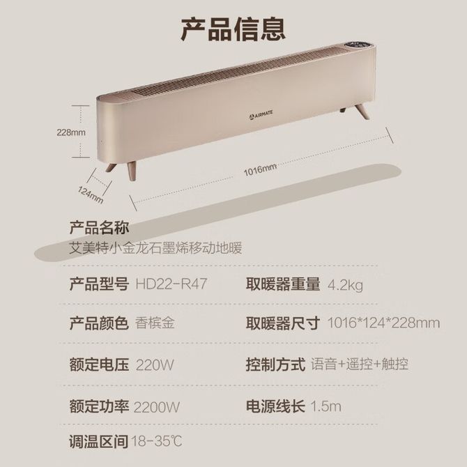 艾美特/Airmate 踢脚线取暖器 移动地暖 居浴两用干衣暖风机 HD22-R47【语音遥控+石墨烯】 语音遥控+石墨烯 兑换价格 15500 里程 会员卡别 终身白金卡 白金卡 金卡 银卡 普通卡 儿童卡 服务 由 生活元素 发货并提供售后 颜色: 其他 购买数量: 件 库存件 配送地址: 立即购买 加入购物车 成功添加到购物车 关闭 购物车共有 种商品 总金额为: 组合销售 产品介绍 产品规格 售后服务 产品咨询 发现好货 彩虹 全线路安全保护调温电热毯 单人款 1.5*0.7米 XL1203 4500 里程 康佳/Konka 取暖器家用石墨烯暖风机立式电暖气浴室电暖风节能热风机速热暖风扇摇头电暖器烤火炉 5700 里程 彩虹(RAINBOW)电热毯全线路安全保护双控双温电热毯(1.8*1.5m)定时电褥子电暖毯一键排潮高温自动断电1358花色随机 8700 里程 美的(Midea)热水器 F05-15A1(S) 厨宝快热小厨宝5升厨房热水宝储水迷你安全家用蓝钻内胆安全厨宝洗速热上出水非下出水 5升上出水1650W速热 17800 里程 志高/Chigo 取暖器 家用节能省电立式暖风机 电暖气速热神器 ZNB-XE01J 8600 里程