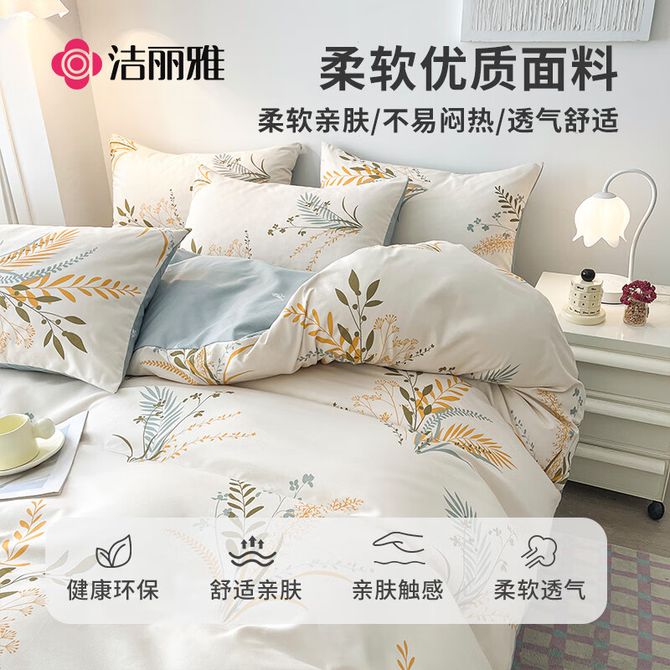 洁丽雅/Grace 春晓亲肤四件套 YRJF-240018 名称:磨毛四件套(EVA袋) 面料:聚酯纤维 工艺:活性印染 尺寸:被套:200*230cm/床单:230*230cm/枕套:48*74cm*2 兑换价格 5200 里程 会员卡别 终身白金卡 白金卡 金卡 银卡 普通卡 儿童卡 服务 由 吉时雨居家生活馆 发货并提供售后 床品套件数量: 四件套 被、单尺寸: 200*230cm 颜色: 花色 购买数量: 件 库存件 配送地址: 立即购买 加入购物车 成功添加到购物车 关闭 购物车共有 种商品 总金额为: 组合销售 产品介绍 产品规格 售后服务 产品咨询 发现好货 宜恋家纺 全棉四件套床上用品套件床单被套枕套礼品 爱巢 1.5-1.8米床适用 7200 里程 九洲鹿 纯棉四件套床品套件 青春气息 YJYH0017 8700 里程 南极人 亲肤纯色裸睡水洗磨毛床上用品四件套 果绿+曦月 N4XW086 5700 里程 洁丽雅 磨毛四件套加厚套件床单款小清新ins风床上用品双人被套床上用品床品四件套初夏-桔 被套200*230cm JDSJT019 4400 里程 紫韵家纺 “自由格调”时尚四件套 磨绒印花床品套件 被套床单枕套ZY-SD1151 7400 里程
