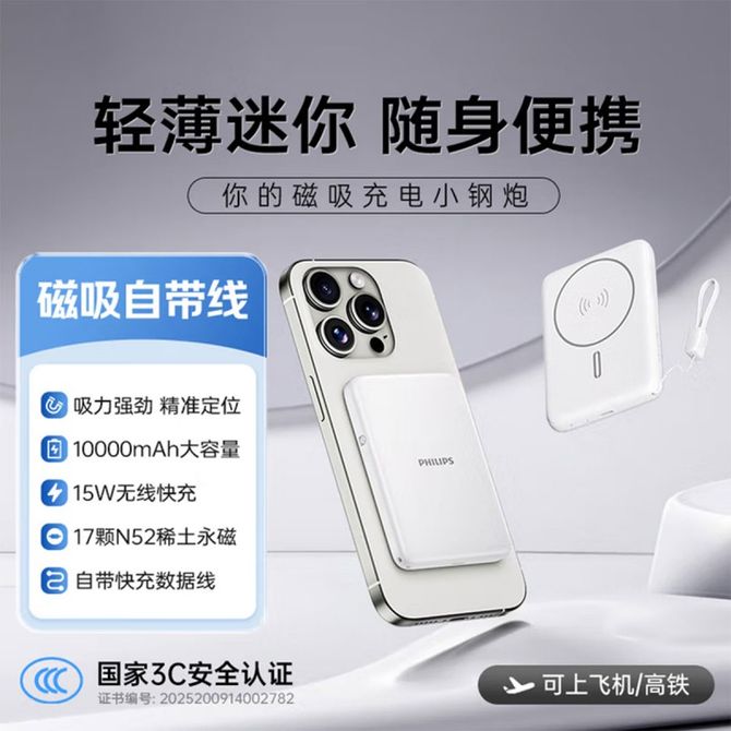 飞利浦/Philips 【国家3C认证】10000mAh磁吸充电宝自带线快充超薄小巧便携迷你移动电源 DLP9220珍珠白 3C认证 可上飞机 机身有3C标识 兑换价格 4800 里程 会员卡别 终身白金卡 白金卡 金卡 银卡 普通卡 儿童卡 服务 由 贝洛美智能科技精品馆 发货并提供售后 电池容量: 8001mAh-10000mAh 颜色: 白色 购买数量: 件 库存件 配送地址: 立即购买 加入购物车 成功添加到购物车 关闭 购物车共有 种商品 总金额为: