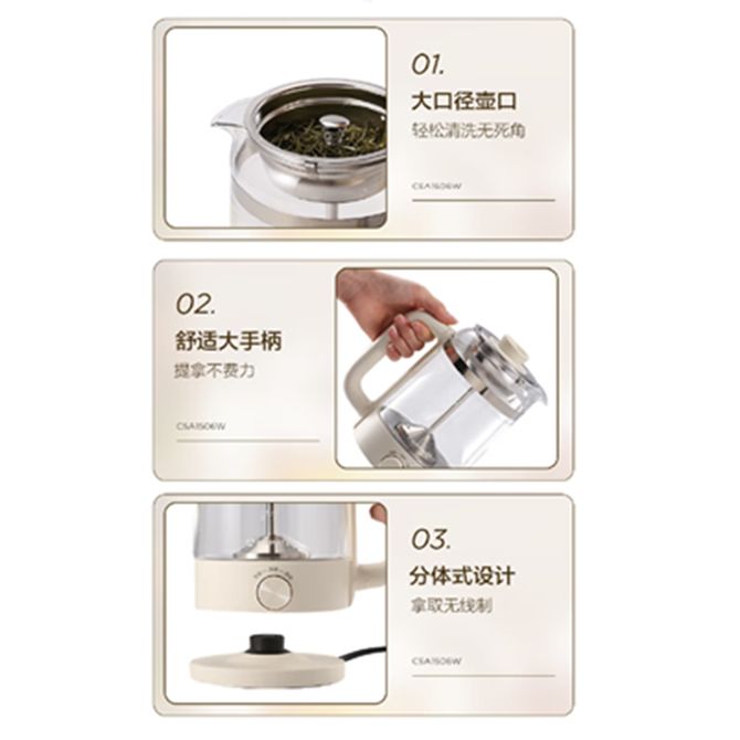 艾美特/Airmate 养生壶煮茶器1L大容量家用蒸汽煮茶壶可视烧水壶玻璃花茶壶电热水壶送礼 CSA1506W 米白 微电脑控温 双档调节 柔音不扰人 超大容量 兑换价格 13000 里程 会员卡别 终身白金卡 白金卡 金卡 银卡 普通卡 儿童卡 服务 由 弘济家电 发货并提供售后 颜色: 米白色 购买数量: 件 库存件 配送地址: 立即购买 加入购物车 成功添加到购物车 关闭 购物车共有 种商品 总金额为: