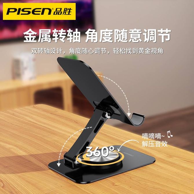 品胜/Pisen 金属支架手机架桌面360度手机旋转直播专用支撑架平板ipad多功能便携支架通用散热折叠绘画