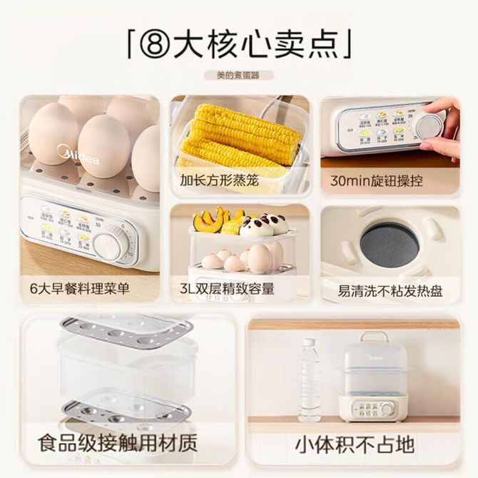 美的/Midea 煮蛋器 双层电蒸锅家用神器 30分钟定时自动断电防干烧 ZDE2015 3L容量;30min旋钮操控;易清洗不粘发热盘; 兑换价格 3900 里程 会员卡别 终身白金卡 白金卡 金卡 银卡 普通卡 儿童卡 服务 由 小枫叶专营店 发货并提供售后 颜色: 杏色 购买数量: 件 库存件 配送地址: 立即购买 加入购物车 成功添加到购物车 关闭 购物车共有 种商品 总金额为: 组合销售 产品介绍 产品规格 售后服务 产品咨询 发现好货 小熊/Bear 煮蛋器 蒸蛋器 单双层家用多功能高温保护早餐鸡蛋羹迷你电蒸锅 ZDQ-D12R3 2000 里程 小熊/Bear 蒸蛋器 ZDQ-D12R3 暖灰色 煮蛋器多功能家用小型双层非自动断电煮蛋神器 2900 里程 小熊/Bear 煮蛋器蒸蛋器单双层家用高温断电迷你早餐鸡蛋羹蒸鸡蛋器蒸蛋机炖蛋器便携式电蒸锅ZDQ-B14Q1 2200 里程 小熊/Bear 煮蛋器蒸蛋器单双层家用高温断电迷你早餐器蒸蛋机炖蛋器蒸蛋锅便携式电蒸锅ZDQ-B14Q1带不锈钢蒸碗 2600 里程 小熊/Bear 煮蛋器 小型家用可定时不锈钢蒸蛋器自动断鸡蛋羹迷你电蒸锅ZDQB07C3 3500 里程