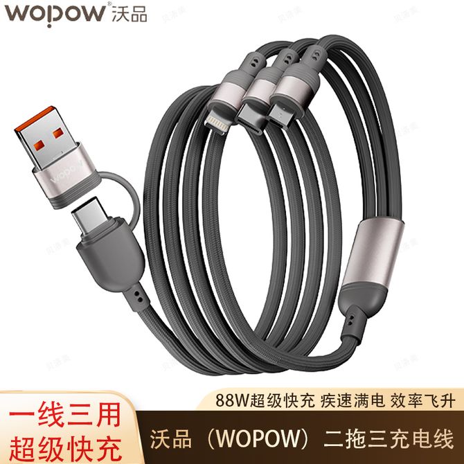沃品/WOPOW 数据线二拖三显示88W超级快充充电线小巧便携 加密编制线 PD快充 兑换价格 1300 里程 会员卡别 终身白金卡 白金卡 金卡 银卡 普通卡 儿童卡 服务 由 贝洛美智能科技精品馆 发货并提供售后 颜色: 其他 购买数量: 件 库存件 配送地址: 立即购买 加入购物车 成功添加到购物车 关闭 购物车共有 种商品 总金额为: 组合销售 产品介绍 产品规格 售后服务 产品咨询 发现好货 雷摄 66W超级快充线 5A数据线一拖三充电线 1.2米苹果/Type-c/安卓三合一快充线华为 车载手机快充电源线 LS-366 1300 里程 倍思(Baseus) 倍思(Baseus) 一拖三数据线3.5A快充 苹果/Type-c/安卓手机一拖三充电线1米 适用苹果华为小米三星 1100 里程 品胜(PISEN) 数据线三合一 苹果Type-c安卓手机充电线1.2米快充 1600 里程 品胜 牛仔布 苹果数据线 牛仔布铝合金数据充电线 2100 里程 品胜(PISEN) 三合一数据线多头usb多功能数据车载充电线 3.5A大功率一拖三苹果/安卓/Type-C 适用iphone安卓苹果华为 1400 里程