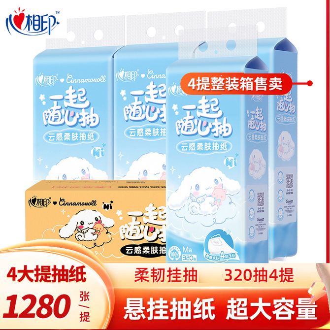 心相印 抽纸悬挂式抽纸共1280抽 加大M码4层云朵压花三丽鸥联名餐巾纸厕纸家用大包卫生纸 该款为320抽*4大提(共1280抽)柔厚亲肤,环保无胶,加大加厚。 兑换价格 1700 里程 会员卡别 终身白金卡 白金卡 金卡 银卡 普通卡 儿童卡 服务 由 京狮文化生活馆 发货并提供售后 包装数量: 4提 购买数量: 件 库存件 配送地址: 立即购买 加入购物车 成功添加到购物车 关闭 购物车共有 种商品 总金额为: 组合销售 产品介绍 产品规格 售后服务 产品咨询 发现好货 维达卷纸 卫生纸实惠装厕纸家用厕所纸巾手纸整箱批有芯大卷家庭装 1200-2300 里程 维达 Vinda 卷纸 140g/卷*10卷 蓝色经典3层卫生纸 1300 里程 心相印抽纸 茶语丝享系列 量贩家庭装 3层*100抽*4包(茶香 压花) 1100 里程 心相印 经典系列 二层面巾纸 180抽*6包*1提 1100 里程 维达Vinda 超韧系列抽纸(3层*130抽*6包) 原生木浆卫生餐巾纸婴儿面巾纸 6包优惠装 1100 里程