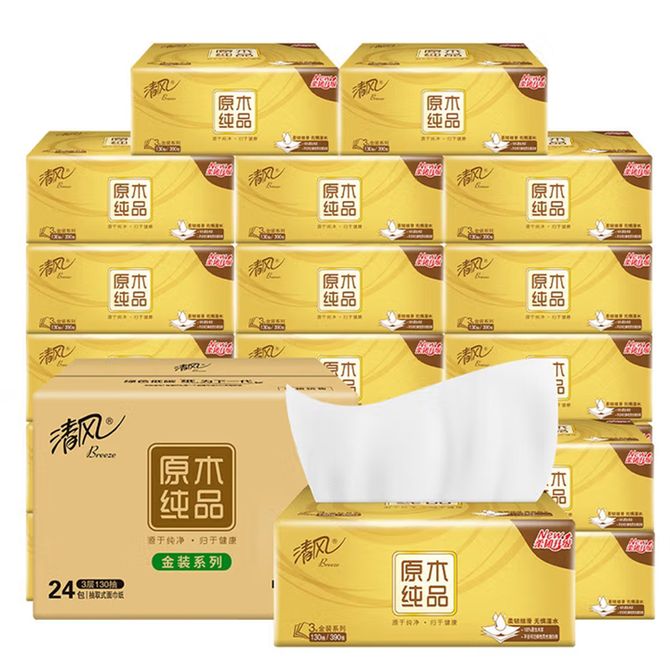 清风 原木金装抽纸 3层130抽24包 柔韧细腻厚实卫生纸纸巾餐巾纸 该款新旧包装随机发 原生木浆 安心使用 紧致厚实 湿水可用 韧性升级 细滑舒软 兑换价格 2600 里程 会员卡别 终身白金卡 白金卡 金卡 银卡 普通卡 儿童卡 服务 由 上海攀宸贸易有限公司 发货并提供售后 包装数量: 箱 购买数量: 件 库存件 配送地址: 立即购买 加入购物车 成功添加到购物车 关闭 购物车共有 种商品 总金额为: 组合销售 产品介绍 产品规格 售后服务 产品咨询 发现好货 维达卷纸 卫生纸实惠装厕纸家用厕所纸巾手纸整箱批有芯大卷家庭装 1200-2300 里程 维达 Vinda 卷纸 140g/卷*10卷 蓝色经典3层卫生纸 1300 里程 心相印抽纸 茶语丝享系列 量贩家庭装 3层*100抽*4包(茶香 压花) 1100 里程 心相印 经典系列 二层面巾纸 180抽*6包*1提 1100 里程 维达Vinda 超韧系列抽纸(3层*130抽*6包) 原生木浆卫生餐巾纸婴儿面巾纸 6包优惠装 1100 里程