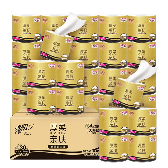 清风 有芯卷纸 4层110克30卷 黑金系列4层蓬厚亲肤柔适卷筒卫生纸整箱厕纸 产品升级 新老产品交替发货 双面立体玉兰浮雕压花 不含化学复合胶 超强厚韧 易冲散 原生木浆 兑换价格 2600 里程 会员卡别 终身白金卡 白金卡 金卡 银卡 普通卡 儿童卡 服务 由 上海攀宸贸易有限公司 发货并提供售后 包装数量: 箱 购买数量: 件 库存件 配送地址: 立即购买 加入购物车 成功添加到购物车 关闭 购物车共有 种商品 总金额为: 组合销售 产品介绍 产品规格 售后服务 产品咨询 发现好货 维达卷纸 卫生纸实惠装厕纸家用厕所纸巾手纸整箱批有芯大卷家庭装 1200-2300 里程 维达 Vinda 卷纸 140g/卷*10卷 蓝色经典3层卫生纸 1300 里程 心相印抽纸 茶语丝享系列 量贩家庭装 3层*100抽*4包(茶香 压花) 1100 里程 心相印 经典系列 二层面巾纸 180抽*6包*1提 1100 里程 维达Vinda 超韧系列抽纸(3层*130抽*6包) 原生木浆卫生餐巾纸婴儿面巾纸 6包优惠装 1100 里程