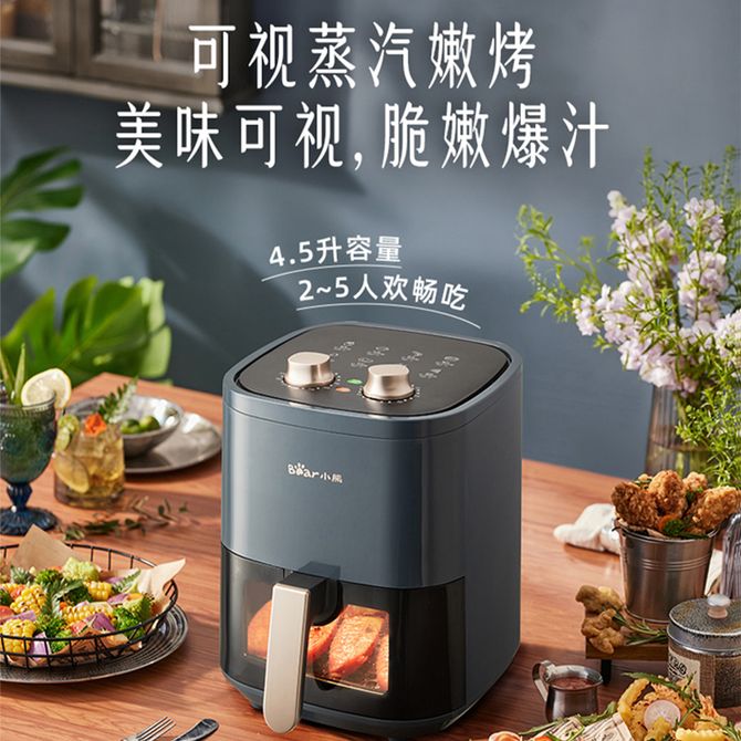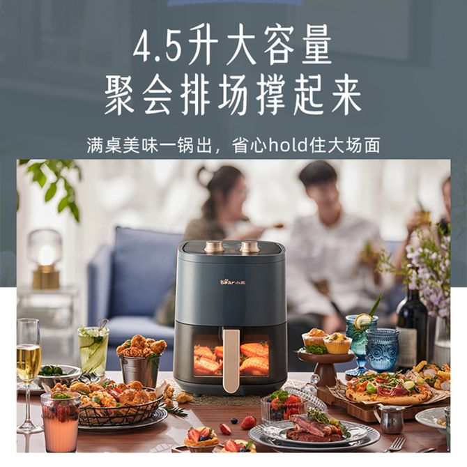 小熊/Bear 4.5L空气炸锅家用无油烟低脂多功能电炸锅可拆不粘滤油架一冲即净不留油渍 立体循环空气炸脆化脱脂少油腻 透明可视窗口烹调状态尽入你眼 兑换价格 11300 里程 会员卡别 终身白金卡 白金卡 金卡 银卡 普通卡 儿童卡 服务 由 聚品惠家电生活馆 发货并提供售后 颜色: 其他 购买数量: 件 库存件 配送地址: 立即购买 加入购物车 成功添加到购物车 关闭 购物车共有 种商品 总金额为: 组合销售 产品介绍 产品规格 售后服务 产品咨询 发现好货 苏泊尔(SUPOR)空气炸锅 家用多功能4.2L大容量 烤箱薯条机 无油烟电炸锅 大功率 无油低脂煎炸锅KJ42D811 6500 里程 苏泊尔(SUPOR)空气炸锅家用3L大容量电炸锅 蒸汽嫩炸多功能无油烟煎炸薯条机烤箱KD30DQ815 21700 里程 美的/Midea 空气炸锅 可视 不用翻面 金属内腔 蒸汽嫩炸 三档烘烤风力 5L KZC5089 10700 里程 小熊/Bear 空气炸锅 4D漩烤不用翻面 全自动 5L实用大容量 可视 蒸汽嫩炸 控油脱脂 炸烤箱一体机 9100 里程 小熊/Bear 家用多功能锅电炒锅电火锅电煮锅电锅分体式C60J5 6500 里程