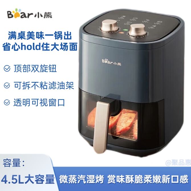 小熊/Bear 4.5L空气炸锅家用无油烟低脂多功能电炸锅可拆不粘滤油架一冲即净不留油渍 立体循环空气炸脆化脱脂少油腻 透明可视窗口烹调状态尽入你眼 兑换价格 11300 里程 会员卡别 终身白金卡 白金卡 金卡 银卡 普通卡 儿童卡 服务 由 聚品惠家电生活馆 发货并提供售后 颜色: 其他 购买数量: 件 库存件 配送地址: 立即购买 加入购物车 成功添加到购物车 关闭 购物车共有 种商品 总金额为:
