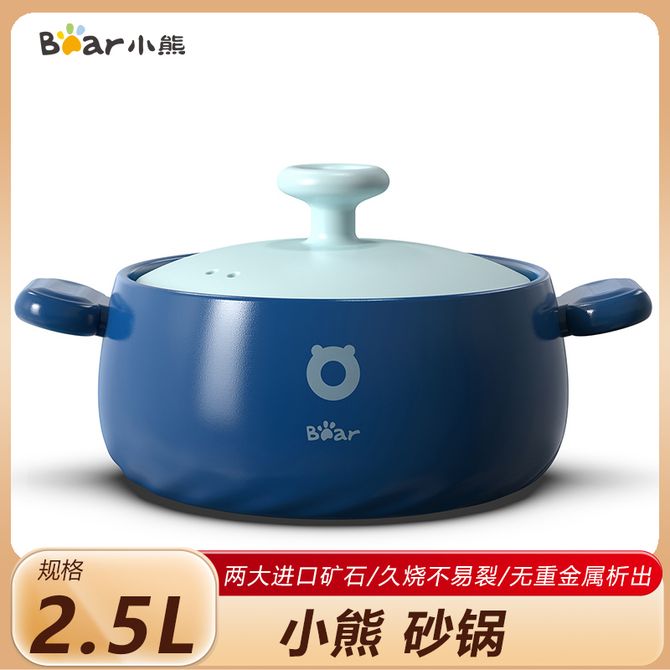 小熊 砂锅2.5L 煲汤煲仔饭啫啫煲煮粥煎药中药锅炖锅一锅多用 耐高温久烧不裂 【此款为2.5L浅蓝色砂锅 详情共用】两大进口矿石,久烧不易裂,耐热650°C,放心材质,无重金属析出 兑换价格 5700 里程 会员卡别 终身白金卡 白金卡 金卡 银卡 普通卡 儿童卡 服务 由 广西桂雅文化传媒有限公司 发货并提供售后 颜色: 其他 购买数量: 件 库存件 配送地址: 立即购买 加入购物车 成功添加到购物车 关闭 购物车共有 种商品 总金额为: