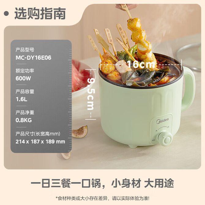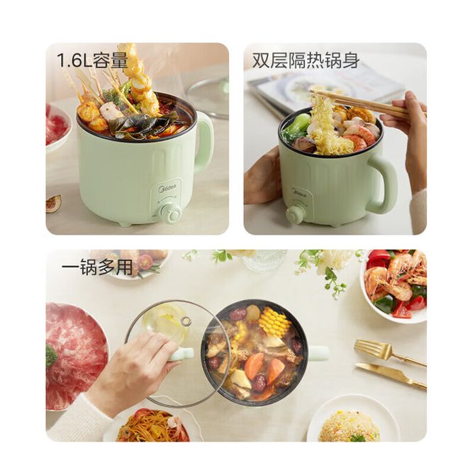 美的/Midea 电煮锅1.6L容量加深锅 双层隔热锅身云朵可爱造型一锅多用 DY16E06 旋钮一步到位 小身材大火力 兑换价格 4200 里程 会员卡别 终身白金卡 白金卡 金卡 银卡 普通卡 儿童卡 服务 由 成都安泰盛世商贸有限公司 发货并提供售后 颜色: 浅绿色 购买数量: 件 库存件 配送地址: 立即购买 加入购物车 成功添加到购物车 关闭 购物车共有 种商品 总金额为: 组合销售 产品介绍 产品规格 售后服务 产品咨询 发现好货 美的/Midea 空气炸锅 家用5升可视炸锅金属内腔体微蒸汽多功能智能双旋控温电炸锅 KZE5089 10900 里程 小熊/Bear 空气炸锅 4D漩烤不用翻面 全自动 5L实用大容量 可视 蒸汽嫩炸 控油脱脂 炸烤箱一体机 9100 里程 奥克斯 电火锅 电炒锅 电煮锅 火锅锅 电锅一体锅 家用多功能料理烤肉电热锅 多用途锅大容量 无笼款 5L 4800 里程 苏泊尔(SUPOR)多功能锅料理锅电火锅多用途电煮锅不粘电热锅家用电炒锅方形烤盘煎烤锅JD3424D08-150 YL 13000 里程 苏泊尔(SUPOR)多用途锅电火锅QC系列家用5.5L电蒸锅煎烤机多功能网红锅JD3424D808 13400 里程