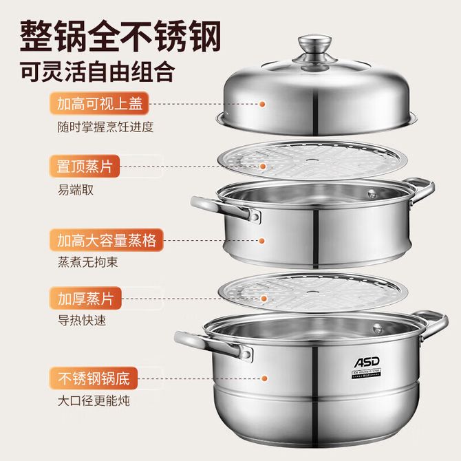 爱仕达(ASD) 蒸锅不锈钢三层 上蒸下煮节能节时 电磁炉煤气通用 28cm 电磁炉煤气通用 28cm ZS28G3WG 兑换价格 7400 里程 会员卡别 终身白金卡 白金卡 金卡 银卡 普通卡 儿童卡 服务 由 林峥厨具专营店 发货并提供售后 颜色: 其他 购买数量: 件 库存件 配送地址: 立即购买 加入购物车 成功添加到购物车 关闭 购物车共有 种商品 总金额为: 组合销售 产品介绍 产品规格 售后服务 产品咨询 发现好货 苏泊尔(SUPOR) 蒸锅不锈钢28cm复底双层SZ28B5蒸鱼蒸馒头蒸馍大蒸锅蒸笼 8700 里程 拜格双层木柄复底蒸锅32CM304不锈钢BG50093 5300 里程 德铂(Debo)汤锅不锈钢单层蒸锅蒸笼电磁炉两用锅艾琳诺26cm DEP-DS146 2100 里程 拜格(Bayco) 蒸锅三层家用蒸馒头煲汤加厚汤锅BG1548【28cm】 3000 里程 炊大皇(COOKER KING) 304不锈钢三层蒸锅家用复合底汤锅蒸馒头包子可视可立高拱盖30cm 6100 里程