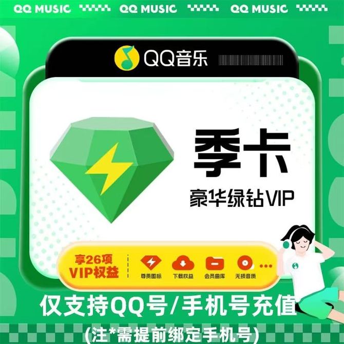 QQ音乐 豪华绿钻权益 三个月 QQ登录备注QQ号,充值手机号必须在QQ音乐APP绑定手机号 兑换价格 2900 里程 会员卡别 终身白金卡 白金卡 金卡 银卡 普通卡 儿童卡 服务 由 纪事科技 发货并提供售后 卡券规格: 单张 购买数量: 件 库存件 立即购买 成功添加到购物车 关闭 购物车共有 种商品 总金额为: 组合销售 产品介绍 产品规格 售后服务 产品咨询 发现好货 腾讯视频 VIP会员 月卡31天 电视端不可使用 1100 里程 腾讯视频 SVIP会员 月卡/1个月 支持电视端使用 1800 里程 QQ音乐 豪华绿钻 一个月 1100 里程 哔哩哔哩大会员 bilibili B站VIP大会员月卡/1个月 手机直充 1100 里程 YOUKU 优酷视频SVIP会员月卡 酷喵TV会员1个月 电视端可用 2000 里程