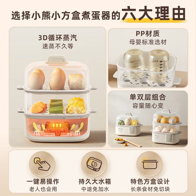 组合销售 产品介绍 产品规格 售后服务 产品咨询 发现好货 小熊/Bear 煮蛋器 蒸蛋器 单双层家用多功能高温保护早餐鸡蛋羹迷你电蒸锅 ZDQ-D12R3 2000 里程 小熊/Bear 蒸蛋器 ZDQ-D12R3 暖灰色 煮蛋器多功能家用小型双层非自动断电煮蛋神器 2900 里程 小熊/Bear 煮蛋器蒸蛋器单双层家用高温断电迷你早餐鸡蛋羹蒸鸡蛋器蒸蛋机炖蛋器便携式电蒸锅ZDQ-B14Q1 2200 里程 小熊/Bear 煮蛋器蒸蛋器单双层家用高温断电迷你早餐器蒸蛋机炖蛋器蒸蛋锅便携式电蒸锅ZDQ-B14Q1带不锈钢蒸碗 2600 里程 小熊/Bear 煮蛋器 小型家用可定时不锈钢蒸蛋器自动断鸡蛋羹迷你电蒸锅ZDQB07C3 3500 里程