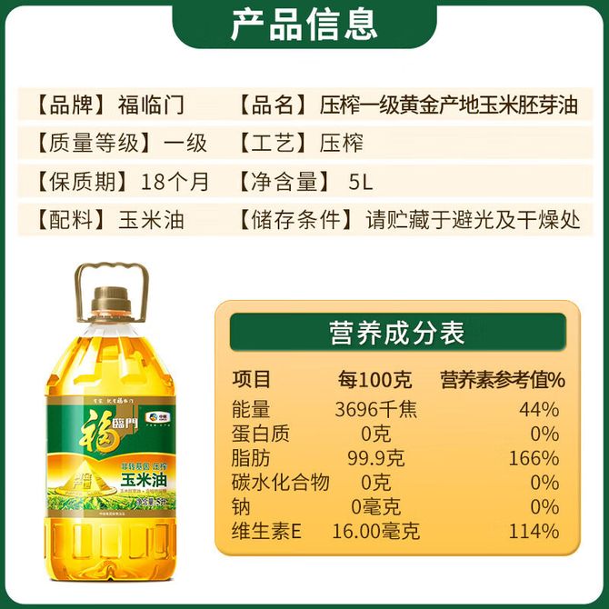 组合销售 产品介绍 产品规格 售后服务 产品咨询 发现好货 长寿花 金胚玉米油食用油非转基因压榨一级 1.8L 2200 里程 珍佰粮菜籽油5L 5500 里程 福临门 家香味食用油 沂蒙土榨 花生仁油900ml 1300 里程 福临门 一级大豆油900ML/瓶 优质家用食用油 1100 里程 长寿花金胚玉米油1.8L 2400 里程