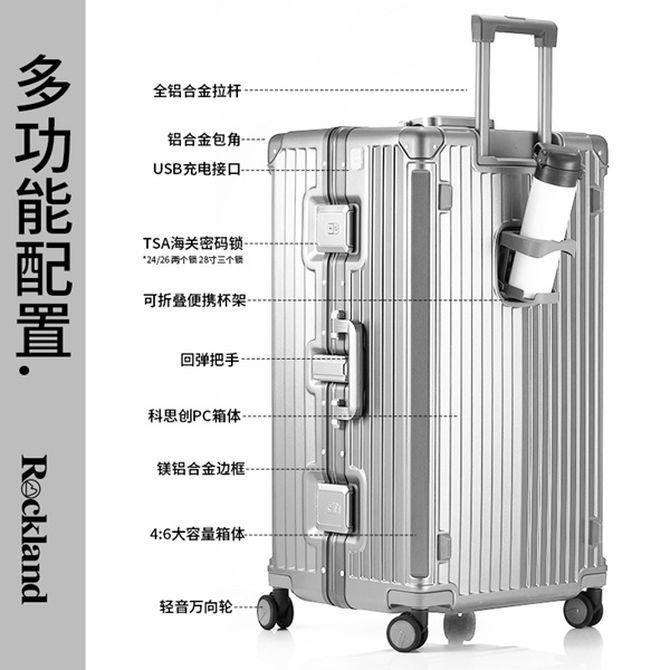 洛克兰/ROCKLAND 网格收纳区 封闭收纳区 防水分区 拓界者系列拉杆箱 20寸暮色灰