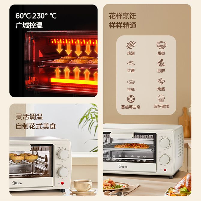 美的/Midea 电烤箱10L烘烤均匀高效散热家用机械式控制电烤箱耐用钢化玻璃门 广域控温 旋控操作 侧面散热墙 可半拆屑盘 兑换价格 5700 里程 会员卡别 终身白金卡 白金卡 金卡 银卡 普通卡 儿童卡 服务 由 北京致诚博雅贸易有限公司 发货并提供售后 颜色: 其他 购买数量: 件 库存件 配送地址: 立即购买 加入购物车 成功添加到购物车 关闭 购物车共有 种商品 总金额为: 组合销售 产品介绍 产品规格 售后服务 产品咨询 发现好货 美的/Midea 空气炸锅 5L可视窗口免翻面电炸锅 双旋钮控时控温 食品接触不粘涂层 MF-KZE5089 8700 里程 荣事达5.5L大容量 家用智能触控多功能空气炸锅 RS-AF181L 10900 里程 美的/Midea 空气炸锅家用新款一体多功能免翻面电炸锅电烤箱华凌烹饪机KZE4501TQ 6500 里程 美的/Midea 空气炸锅 5L家用大容量 可视窗口 免翻面 蒸汽嫩炸 金属内腔 多功能智能精准控温 电炸锅KZC5089 5L 10700 里程 美的/Midea 空气炸锅 免翻面可视家用大容量 5L 多功能 不沾易洗 蒸汽嫩炸 9600 里程