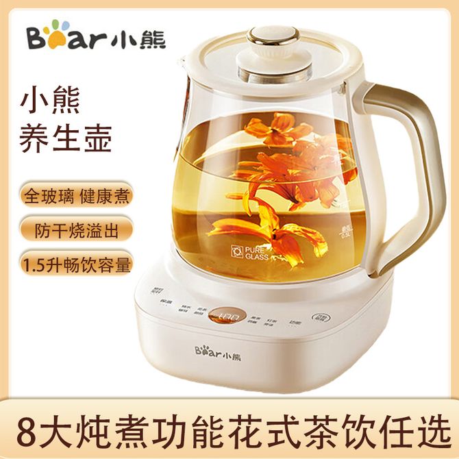 小熊/Bear 养生壶1.5L 安吨吨恒温壶 办公室多功能煮茶壶 可预约保温全玻璃养生壶恒温壶 1.5L容量 健康煮1000W大功率 防干烧防溢出水温水位双感 兑换价格 12600 里程 会员卡别 终身白金卡 白金卡 金卡 银卡 普通卡 儿童卡 服务 由 中农创家电生活馆 发货并提供售后 颜色: 其他 购买数量: 件 库存件 配送地址: 立即购买 加入购物车 成功添加到购物车 关闭 购物车共有 种商品 总金额为: 组合销售 产品介绍 产品规格 售后服务 产品咨询 发现好货 九阳/Joyoung 养生壶1.5L茶具电茶壶煮茶壶花茶壶玻璃煮茶器煎药壶中药锅药膳电水壶烧水壶 3900 里程 九阳/Joyoung 养生壶迷你玻璃花茶壶煮茶器 12大功能11档温度 电水壶热水壶烧水壶 1.5L DGD1506BQ 3900 里程 美的/Midea 养生壶 1.5L家用多功能小型全自动办公室烧水壶加厚玻璃煮茶热水壶 MK-YS15P201 4200 里程 美的/Midea 养生壶 1.5L家用养生壶全自动玻璃烧水壶24h预约烧水壶12小时防干烧保护智能恒温 MK-YS15P202 3700 里程 美的/Midea 养生壶 1.5L全自动电热水壶 24h预约12小时智能恒温 14大功能11档控温 花茶壶煮茶器MK-Y12Q 3500 里程