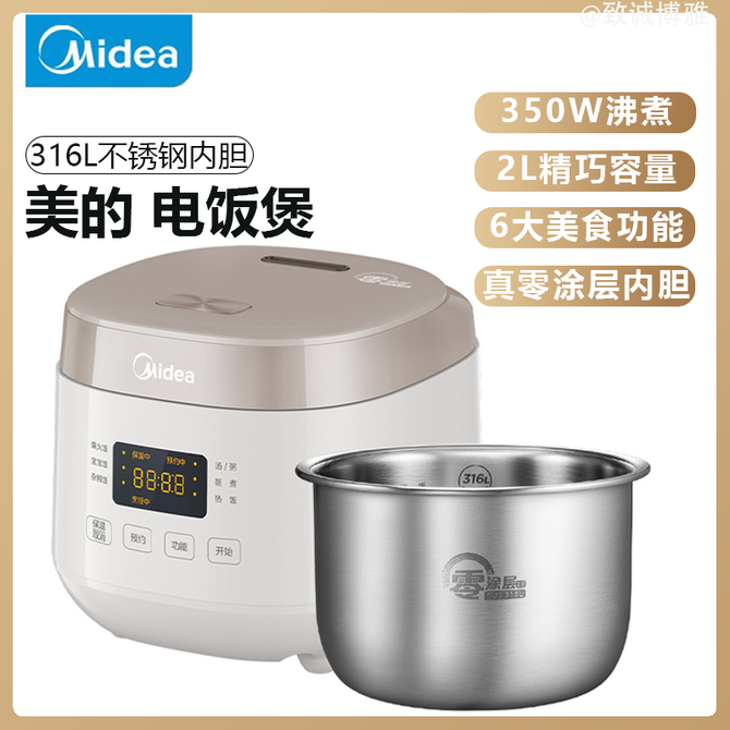 美的/Midea 电饭煲2L精巧容量电饭锅家用小型煮饭煲可预约316L不锈钢内胆 316L不锈钢内胆 350W沸煮 6大美食功能 真零涂层内胆 兑换价格 10400 里程 会员卡别 终身白金卡 白金卡 金卡 银卡 普通卡 儿童卡 服务 由 北京致诚博雅贸易有限公司 发货并提供售后 颜色: 其他 购买数量: 件 库存件 配送地址: 立即购买 加入购物车 成功添加到购物车 关闭 购物车共有 种商品 总金额为: