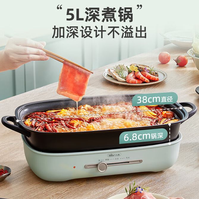 小熊/Bear 电火锅 煎盘+火锅 一机双盘 多功能料理锅 分体式火锅煎锅 DHG-D50T1 一机双盘;不粘烤盘;无级拨杆控火候;5L煮锅; 兑换价格 12200 里程 会员卡别 终身白金卡 白金卡 金卡 银卡 普通卡 儿童卡 服务 由 小枫叶专营店 发货并提供售后 颜色: 绿色 购买数量: 件 库存件 配送地址: 立即购买 加入购物车 成功添加到购物车 关闭 购物车共有 种商品 总金额为: