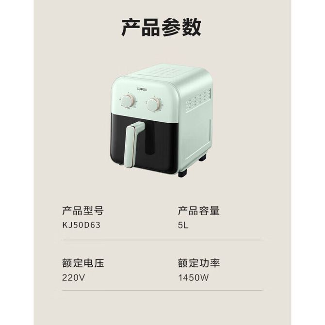 苏泊尔 空气炸锅 KJ50D63 多功能无油烟煎炸锅免翻面 5L大容量 远红外嫩炸薯条机 电炸锅 兑换价格 14400 里程 会员卡别 终身白金卡 白金卡 金卡 银卡 普通卡 儿童卡 服务 由 锦宁家电馆 发货并提供售后 颜色: 其他 购买数量: 件 库存件 配送地址: 立即购买 加入购物车 成功添加到购物车 关闭 购物车共有 种商品 总金额为: 组合销售 产品介绍 产品规格 售后服务 产品咨询 发现好货 苏泊尔(SUPOR)空气炸锅 家用多功能4.2L大容量 烤箱薯条机 无油烟电炸锅 大功率 无油低脂煎炸锅KJ42D811 6500 里程 苏泊尔(SUPOR)空气炸锅家用3L大容量电炸锅 蒸汽嫩炸多功能无油烟煎炸薯条机烤箱KD30DQ815 21700 里程 美的/Midea 空气炸锅 家用5升可视炸锅金属内腔体微蒸汽多功能智能双旋控温电炸锅 KZE5089 10900 里程 美的/Midea 空气炸锅 可视 不用翻面 金属内腔 蒸汽嫩炸 三档烘烤风力 5L KZC5089 10700 里程 小熊/Bear 空气炸锅 4D漩烤不用翻面 全自动 5L实用大容量 可视 蒸汽嫩炸 控油脱脂 炸烤箱一体机 9100 里程
