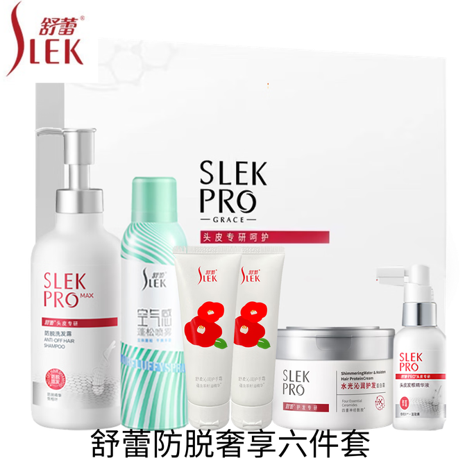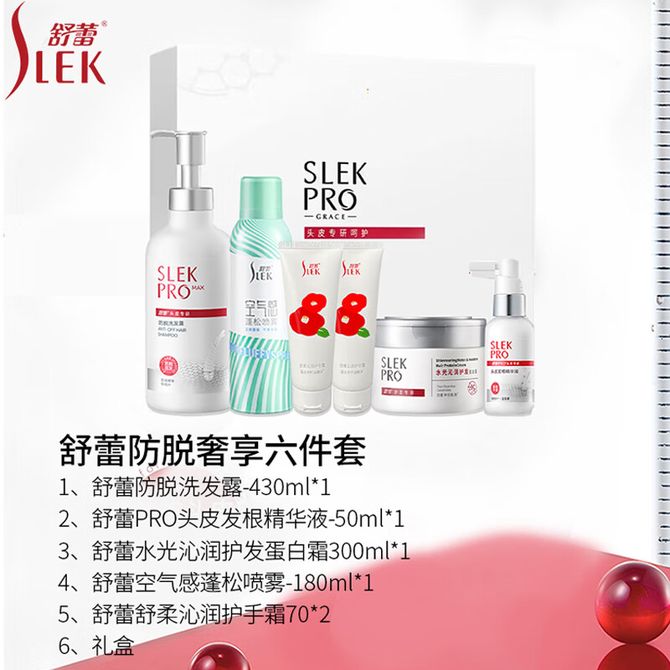 舒蕾/Slek 防脱奢享六件套洗发露 发根精华液 蓬松喷雾 护发蛋白霜 护手霜套装 发货配置:防脱洗发露*1 发根精华液*1 蓬松喷雾*1 护发蛋白霜*1 护手霜*2 兑换价格 14200 里程 会员卡别 终身白金卡 白金卡 金卡 银卡 普通卡 儿童卡 服务 由 鑫一精致生活馆 发货并提供售后 套装分类: 组合装 颜色: 其他 化妆品容量: 组合 购买数量: 件 库存件 配送地址: 立即购买 加入购物车 成功添加到购物车 关闭 购物车共有 种商品 总金额为: 组合销售 产品介绍 产品规格 售后服务 产品咨询 发现好货 欧舒丹(L'OCCITANE )乳木果护手霜 甜蜜樱花润手霜 2件装 7900 里程 欧舒丹(L'OCCITANE) 乳木果丰凝润肤露4件套组 21800 里程 欧舒丹(L'OCCITANE ) 甜蜜樱花 润手霜 唇膏 香皂 套装 10000 里程 欧舒丹(L'OCCITANE)甜蜜樱花沐浴润肤4件套组 25300 里程 欧舒丹(L'OCCITANE) 手霜套装 乳木果护手霜甜蜜樱花手霜 30ml*2 8200 里程