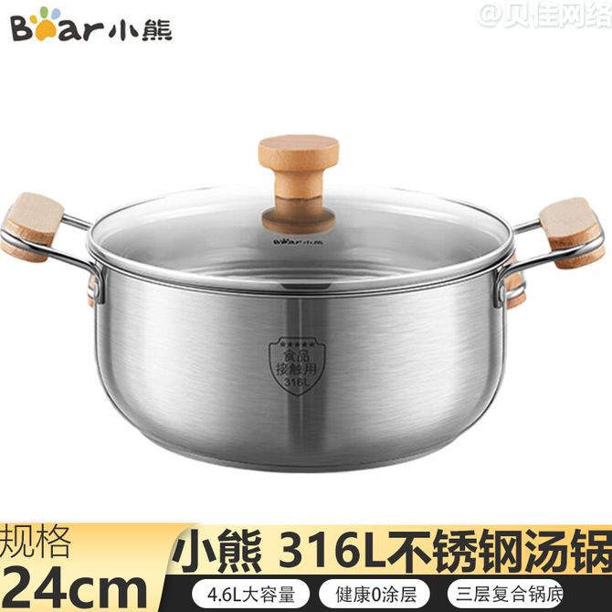 小熊 316L不锈钢汤锅家用24cm炖锅煮粥锅 三层复合锅底单锅 该款为汤锅24cm单锅 详情共用;上蒸下煮 健康0涂层 三层复合锅底 兑换价格 6400 里程 会员卡别 终身白金卡 白金卡 金卡 银卡 普通卡 儿童卡 服务 由 广西自贸区贝佳网络科技有限公司 发货并提供售后 颜色: 其他 购买数量: 件 库存件 配送地址: 立即购买 加入购物车 成功添加到购物车 关闭 购物车共有 种商品 总金额为: 组合销售 产品介绍 产品规格 售后服务 产品咨询 发现好货 拜格 带磁不锈钢28CM单层汤蒸锅 BG1197 2000 里程 德铂(Debo) 弗伦斯堡不锈钢汤锅炖锅20cm电磁炉通用 DEP-179 2600 里程 康宁visions晶彩系列透明锅琥珀色玻璃锅耐热可明火汤锅炖锅 1.25L晶彩锅VS-12-E-LCL/ZK 10500 里程 拜格奶锅配蒸格 宝宝辅食锅汤锅不锈钢加厚电磁炉燃气通用蒸锅泡面锅 BG1354 2100 里程 拜格(Bayco) 不锈钢带蒸格小奶锅16cm 婴儿辅食锅 汤锅煮面锅 燃气电磁炉通用 BG8198 1700 里程