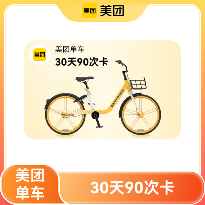 美团 单车30天90次卡(单日限3次)前1小时免费;赠送京东电子礼品卡1元1张