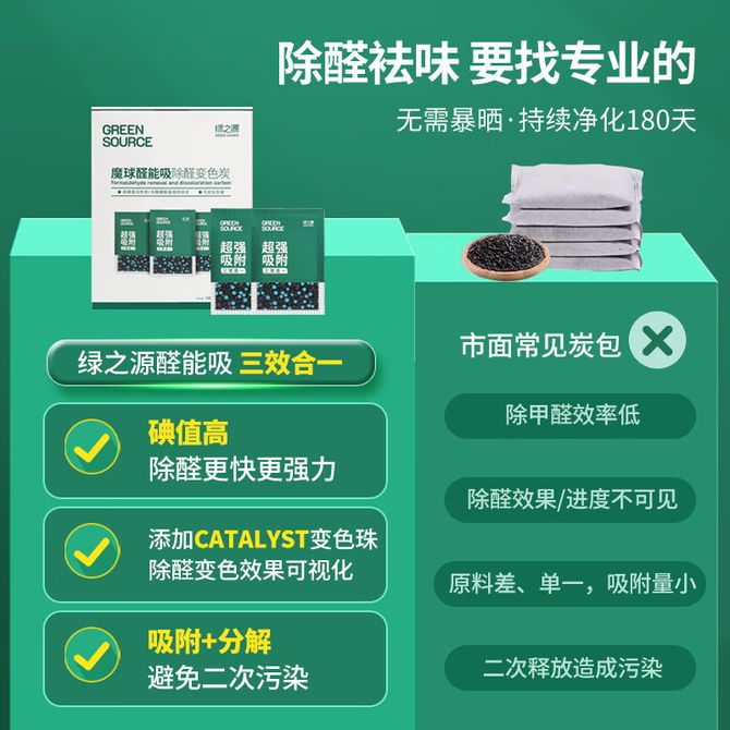 绿之源 魔球 醛能吸除醛变色炭包高碘值变色吸附加分解新房装修除甲醛加除异味活性炭包 1.08kg/盒(90g*12包)*2盒 孔隙发达 强效吸附 快速分解 添加CATALYST效果可视 兑换价格 8500 里程 会员卡别 终身白金卡 白金卡 金卡 银卡 普通卡 儿童卡 服务 由 燚购家居 发货并提供售后 颜色: 其他 购买数量: 件 库存件 配送地址: 立即购买 加入购物车 成功添加到购物车 关闭 购物车共有 种商品 总金额为:
