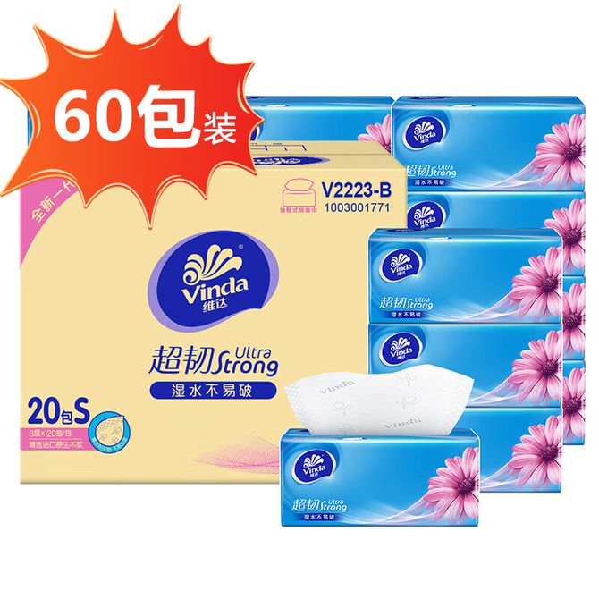 维达 抽纸60包3层S码120抽 超韧卫生巾餐巾纸湿水不易破 原料洁净柔韧手感 V2223B 维达超韧纸面巾 原料安全使用安心 6提=60包,到手3箱 兑换价格 12400 里程 会员卡别 终身白金卡 白金卡 金卡 银卡 普通卡 儿童卡 服务 由 深圳市米司南电子商务有限公司 发货并提供售后 包装数量: 6提 购买数量: 件 库存件 配送地址: 立即购买 加入购物车 成功添加到购物车 关闭 购物车共有 种商品 总金额为: 组合销售 产品介绍 产品规格 售后服务 产品咨询 发现好货 维达卷纸 卫生纸实惠装厕纸家用厕所纸巾手纸整箱批有芯大卷家庭装 1200-2300 里程 维达 Vinda 卷纸 140g/卷*10卷 蓝色经典3层卫生纸 1300 里程 心相印抽纸 茶语丝享系列 量贩家庭装 3层*100抽*4包(茶香 压花) 1100 里程 心相印 经典系列 二层面巾纸 180抽*6包*1提 1100 里程 维达Vinda 超韧系列抽纸(3层*130抽*6包) 原生木浆卫生餐巾纸婴儿面巾纸 6包优惠装 1100 里程