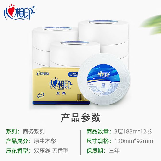 心相印 188米x12卷大盘纸整箱 双压线无香型