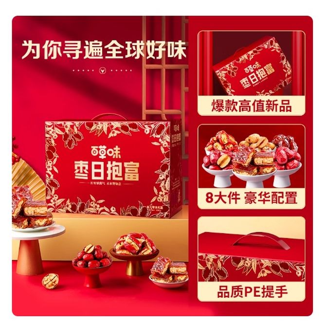 百草味 枣日抱富1885g新疆红枣大枣果干蜜饯 枣日抱富1885g 兑换价格 4400 里程 会员卡别 终身白金卡 白金卡 金卡 银卡 普通卡 儿童卡 服务 由 烁烁食品店 发货并提供售后 规格: 礼盒 购买数量: 件 库存件 配送地址: 立即购买 加入购物车 成功添加到购物车 关闭 购物车共有 种商品 总金额为: 组合销售 产品介绍 产品规格 售后服务 产品咨询 发现好货 珍佰粮和田骏枣500g 买一送一 1600 里程 西域美农 六星新疆和田红枣 500g/袋 1700 里程 西域美农 特惠推荐 5斤装新疆若羌灰枣 超值量贩家庭实惠装 2600 里程 百草味 四色葡萄干500g罐装新疆吐鲁番特产黑加仑免洗一级大果干蜜饯零食 1100 里程 西域美农 新疆若羌灰枣 500g*2袋 免洗大枣 1300 里程