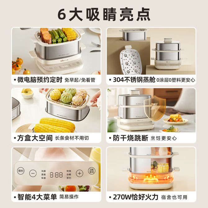 小熊/Bear 煮蛋器 蒸蛋器家用小型电蒸锅2-3人用 智能早餐机神器蒸红薯蒸玉米智能预约 智能4大菜单,304不锈钢,微电脑预约,270W恰好火力 兑换价格 7400 里程 会员卡别 终身白金卡 白金卡 金卡 银卡 普通卡 儿童卡 服务 由 广西自贸区京通桂达科技发展有限公司 发货并提供售后 颜色: 其他 购买数量: 件 库存件 配送地址: 立即购买 加入购物车 成功添加到购物车 关闭 购物车共有 种商品 总金额为:
