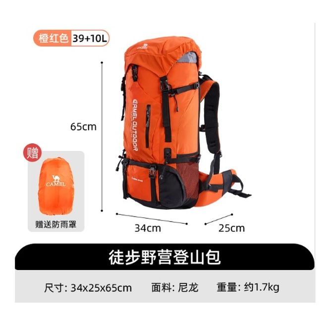 骆驼/Camel 户外登山包专业背包 橙红色,39+10L,减压背负, 橙红色,39+10L,减压背负 兑换价格 18300 里程 会员卡别 终身白金卡 白金卡 金卡 银卡 普通卡 儿童卡 服务 由 四季枫户外用品店 发货并提供售后 颜色: 橙红色 购买数量: 件 库存件 配送地址: 立即购买 加入购物车 成功添加到购物车 关闭 购物车共有 种商品 总金额为: 组合销售 产品介绍 产品规格 售后服务 产品咨询 发现好货 TFO 登山户外背包 男女大容量轻便耐磨电脑仓 旅行骑行野营双肩包 蓝色 40L 9600 里程 匹克/PEAK 防泼水男女户外轻便旅行双肩运动登山背包10L YW41102 5400 里程 驿客/EASTSKY 时尚户外通勤背包(黑色/灰色两色可选)EKB-8007 2200 里程 骆驼/Camel 户外双肩包 背包防水旅行包 轻量书包 徒步旅游登山包(21L) 2100 里程 川崎/KAWASAKI 背包 运动包 正品新款羽毛球包双肩背包男女网羽拍包大容量双肩背包A8211 5700 里程