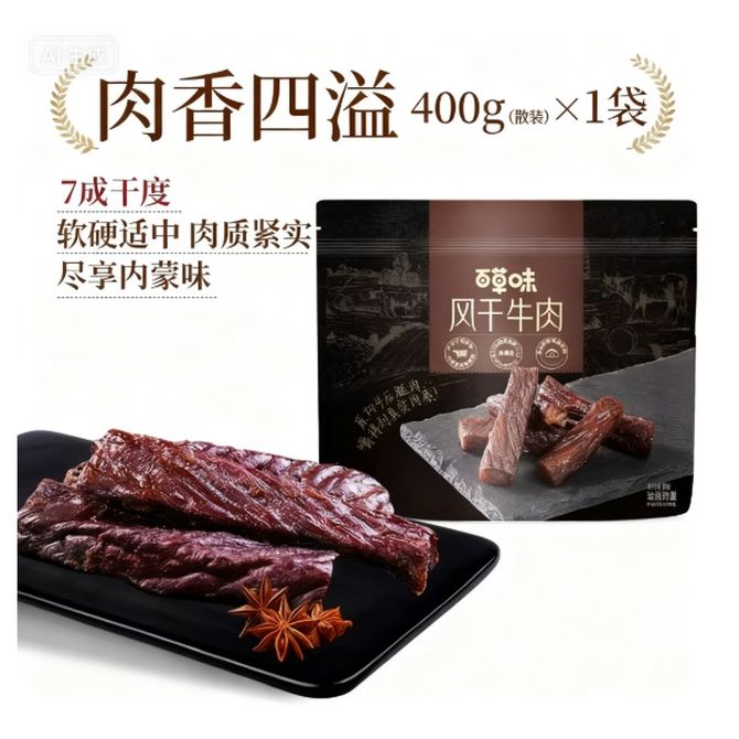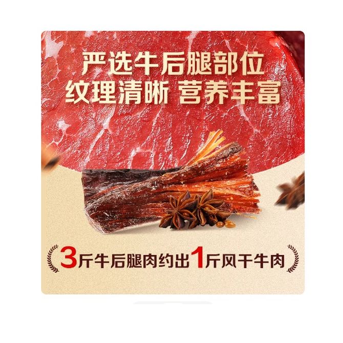 组合销售 产品介绍 产品规格 售后服务 产品咨询 发现好货 蒙都 风干牛肉干 500g (原味/五香/孜然/香辣)下单备注口味 新老包装随机 7000 里程 蒙都 酱牛肉200g*2袋 卤牛肉 熟食 内蒙古特产 五香真空包装熟牛肉 4100 里程 百草味 白芝麻猪肉脯100g 休闲零食肉干肉脯 1100 里程 百草味 白芝麻猪肉脯100g*1袋 1100 里程 百草味 原切牛肉片50g*1袋 牛肉干休闲零食 特产小吃肉干 1500 里程