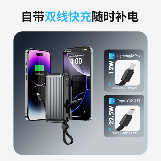 组合销售 产品介绍 产品规格 售后服务 产品咨询 发现好货 ZNNCO 充电宝20000毫安时超薄小巧迷你自带线大容量快充移动电源便携苹果华为小米2万mAh手机 4200 里程 睿量/Remax 磁吸无线充电宝 Magsafe快充 5000mAh超薄小巧便携移动电源 手机背夹迷你移动电源 适用于苹果华为小米手机 RPP-107 4600 里程 雷摄 T68S【3C认证可上飞机】充电宝10000毫安 移动电源 22.5W快充丨1万毫安丨多口输出 1700 里程 纽曼(Newmine) 自带四线充电宝 3C认证 LED智能数显10000毫安移动电源 AL03 经典黑 3000 里程 雷摄 【3C认证】LS-YDZJ01 10000毫安 四线多功能移动电源 黑色 2000 里程
