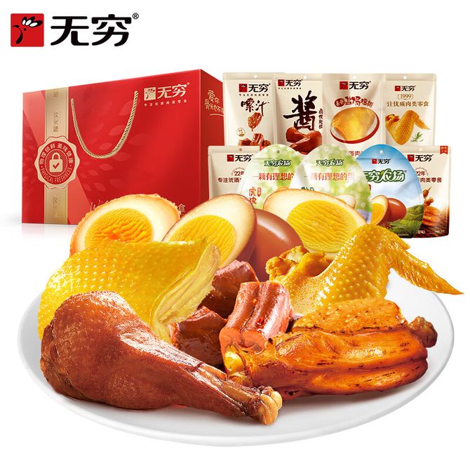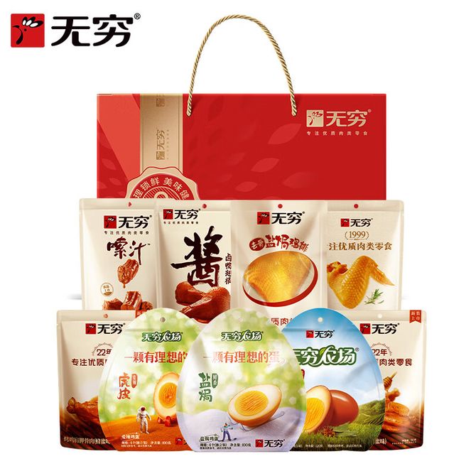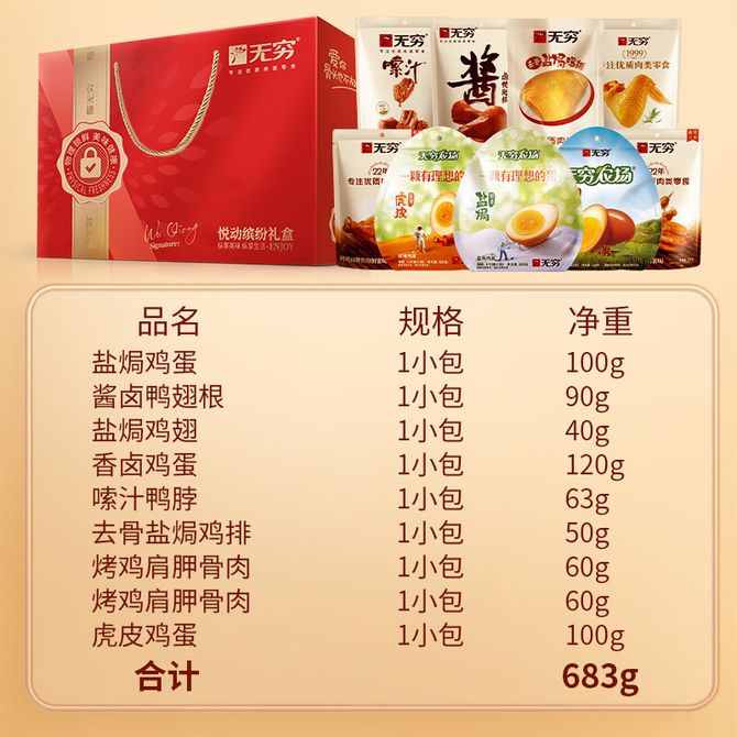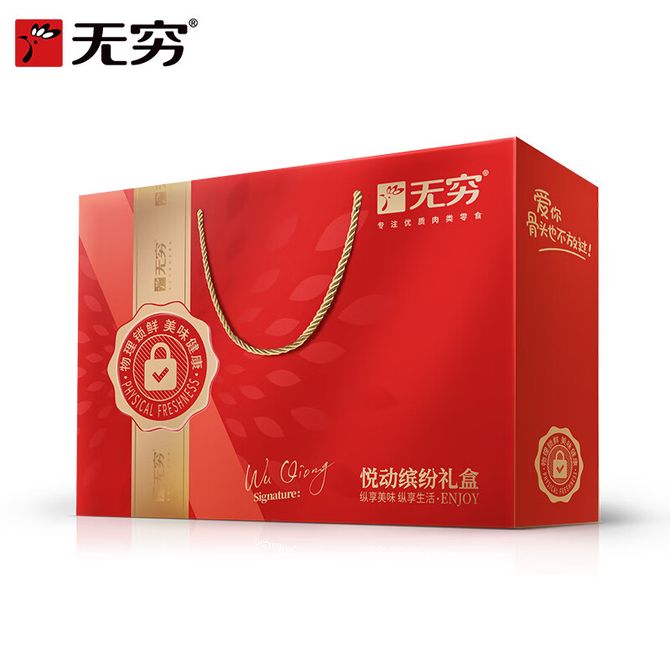 无穷 零食大礼包 过年送礼企业团购员工福利 肉类零食组合 肉干肉脯 新年礼盒 悦动缤纷礼盒683g