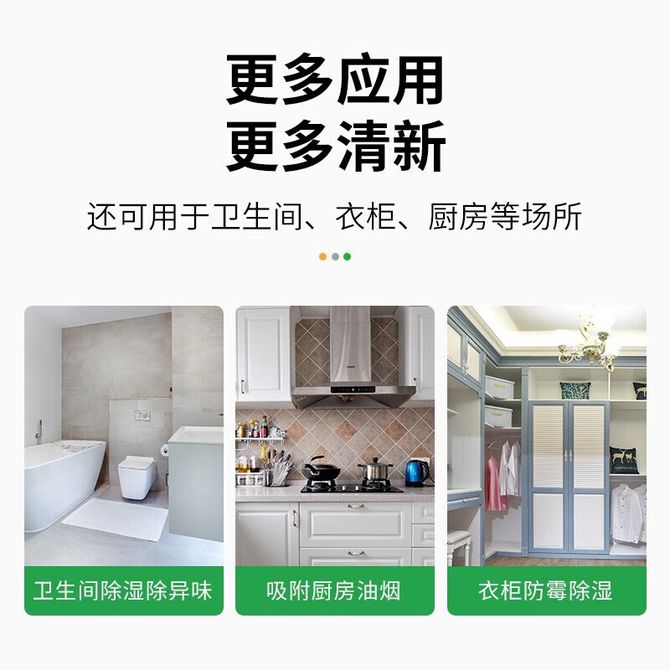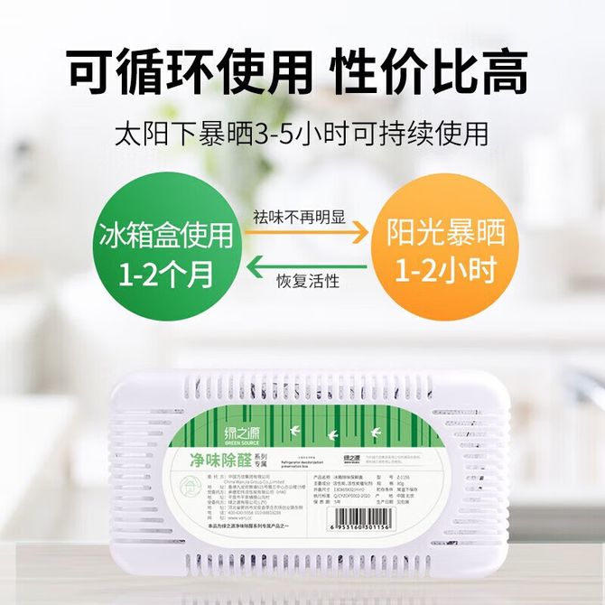 360°去除冰箱异味;24小时全天候吸附,长效保鲜;除湿防霉;轻巧方便;可循环使用,性价比高