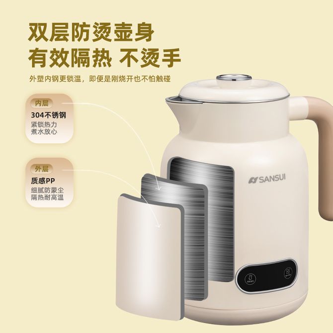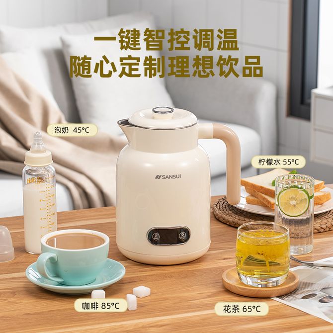 山水/Sansui 智能控温双层防烫电热水壶1.2L YY-12C06 1000W功率,6段智能调温,双层壶身 兑换价格 9600 里程 会员卡别 终身白金卡 白金卡 金卡 银卡 普通卡 儿童卡 服务 由 艾嘉智能电器生活馆 发货并提供售后 颜色: 米白 购买数量: 件 库存件 配送地址: 立即购买 加入购物车 成功添加到购物车 关闭 购物车共有 种商品 总金额为: 组合销售 产品介绍 产品规格 售后服务 产品咨询 发现好货 苏泊尔(SUPOR)电水壶 1.7L 不锈钢/YL SW-17S13A 5700 里程 美菱/MELNG 电水壶304不锈钢烧水壶家用1.7L大容量米白色 MH-K79A 3000 里程 美的/Midea 电热水壶家用大容量烧水壶热水壶双层防烫电水壶304不锈钢内胆自动断电分离式拔盖 MK-SH15X1-102 3000 里程 小熊/Bear 电水壶家用烧水壶 不锈钢自动断电恒温热水壶保温一体电热水壶1.5L容量 3000 里程 志高/Chigo 电水壶烧水壶1.8L大容量电热水壶双层防烫自动断电家用烧水开水壶不锈钢 电水壶 DC-A18F 1900 里程