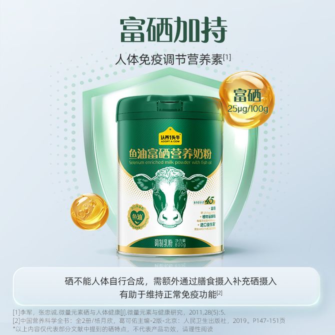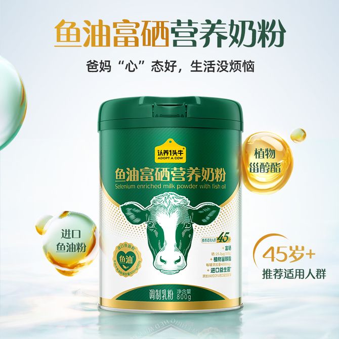 认养一头牛ADOPT A COW 进口鱼油粉,富硒加持,特添加植物甾醇酯800g*2礼盒装 认养一头牛鱼油富硒中老年奶粉 兑换价格 15200 里程 会员卡别 终身白金卡 白金卡 金卡 银卡 普通卡 儿童卡 服务 由 罗迪诺食品专营店 发货并提供售后 规格: 礼盒 购买数量: 件 库存件 配送地址: 立即购买 加入购物车 成功添加到购物车 关闭 购物车共有 种商品 总金额为: 组合销售 产品介绍 产品规格 售后服务 产品咨询 发现好货 蒙牛 铂金装 中老年奶粉400g 益生菌高钙富硒成人奶粉 便捷条装 1400 里程 蒙牛 铂金装中老年益生菌高钙富硒成人奶粉800g罐装0蔗糖营养送礼 2700 里程 蒙牛 悠瑞 金装中老年奶粉400g 高钙富硒成人奶粉 营养冲饮 1500 里程 蒙牛 成人奶粉全家营养高钙奶粉400g 1100 里程 蒙牛 铂金装女士奶粉400g高铁高钙0蔗糖成人奶粉便捷条装 1300 里程