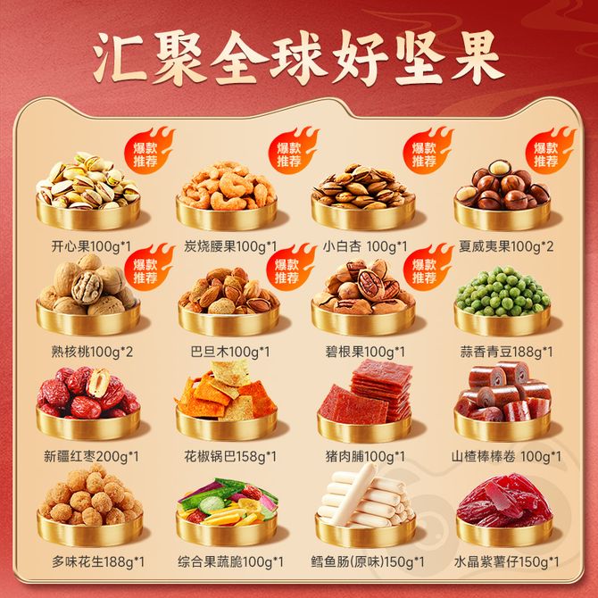味滋源 福年坚果礼盒 2234g【18袋装】 福年坚果礼盒 2234g 兑换价格 5500 里程 会员卡别 终身白金卡 白金卡 金卡 银卡 普通卡 儿童卡 服务 由 多宝商城 发货并提供售后 规格: 礼盒 购买数量: 件 库存件 配送地址: 立即购买 加入购物车 成功添加到购物车 关闭 购物车共有 种商品 总金额为: 组合销售 产品介绍 产品规格 售后服务 产品咨询 发现好货 西域美农 新疆薄皮核桃500g/袋 新疆特产原味 薄皮核桃 1300 里程 西域美农 烘焙腰果200g 坚果特产 休闲零食 带皮腰果仁 1600 里程 味滋源 紫皮腰果2袋装 每袋100g 1100 里程 百草味 坚果炒货夏威夷果100g*1袋 1100 里程 沃隆每日坚果(A)175g盒装 1700 里程