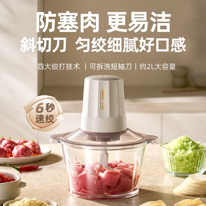 组合销售 产品介绍 产品规格 售后服务 产品咨询 发现好货 卡屋KAWU 绞肉机2.3L家用电动碎肉机PY-37930一副刀片 3300 里程 小熊/Bear 绞肉机家用绞馅机碎肉机电动多功能料理搅拌打肉饺子肉馅蒜蓉机切碎机QSJ-D03W5 4000 里程 小熊/Bear 绞肉机家用QSJ-E03K6 绞馅机 碎肉机 电动多功能料理蒜蓉机 3400 里程 苏泊尔(SUPOR) 绞肉机家用多功能电动碎肉机料理机 辅食肉馅机 蔬菜机 大容量 1.75L JR20-B175 3000 里程 卡屋kawu 蒜蓉器多功能电动无线蒜泥机 1700 里程