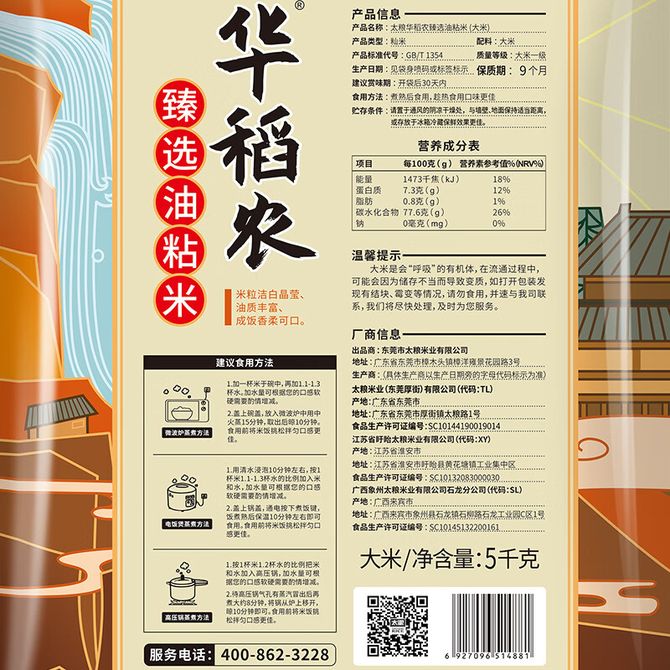 太粮TAILIANG RICE 新鲜大米10斤装 口感软糯 华稻农臻选油粘米 长粒大米 粳米 煲仔饭米 5kg*1袋 口感软糯 (新老包装交替发货) 兑换价格 2600 里程 会员卡别 终身白金卡 白金卡 金卡 银卡 普通卡 儿童卡 服务 由 优米酷食品专营店 发货并提供售后 规格: 袋装 购买数量: 件 库存件 配送地址: 立即购买 加入购物车 成功添加到购物车 关闭 购物车共有 种商品 总金额为: