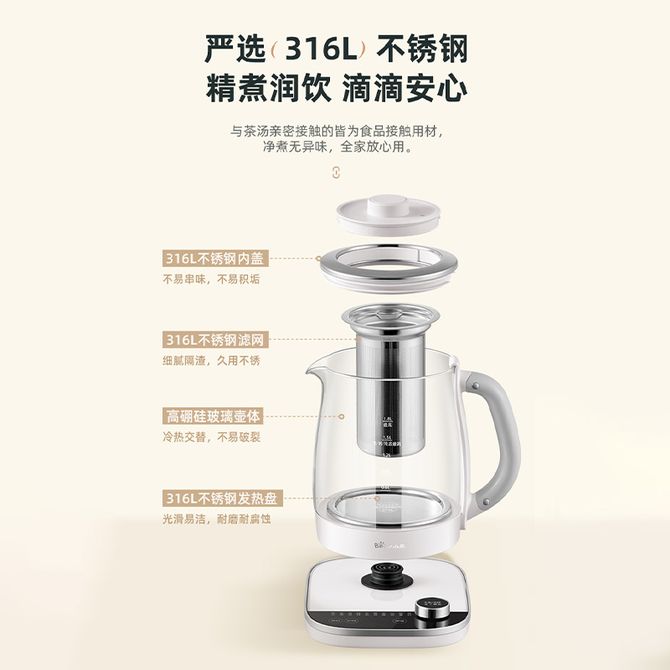 组合销售 产品介绍 产品规格 售后服务 产品咨询 发现好货 九阳/Joyoung 养生壶1.5L茶具电茶壶煮茶壶花茶壶玻璃煮茶器煎药壶中药锅药膳电水壶烧水壶 3900 里程 美的/Midea 养生壶 1.5L家用多功能小型全自动办公室烧水壶加厚玻璃煮茶热水壶 MK-YS15P201 4200 里程 美的/Midea 养生壶 1.5L家用养生壶全自动玻璃烧水壶24h预约烧水壶12小时防干烧保护智能恒温 MK-YS15P202 3500 里程 九阳/Joyoung 养生壶迷你玻璃花茶壶煮茶器 12大功能11档温度 电水壶热水壶烧水壶 1.5L DGD1506BQ 3900 里程 美的/Midea 养生壶 1.5L全自动电热水壶 24h预约12小时智能恒温 14大功能11档控温 花茶壶煮茶器MK-Y12Q 3500 里程