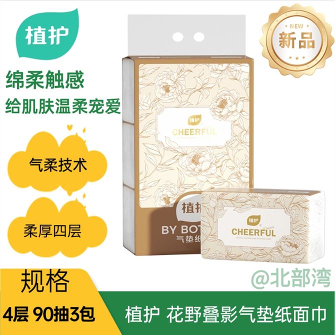 植护 花野叠影气垫纸面巾4层90抽3包/提柔厚四层质感舒适亲肤 气柔技术 原生木浆 柔厚四层 绵感舒适 兑换价格 1100 里程 会员卡别 终身白金卡 白金卡 金卡 银卡 普通卡 儿童卡 服务 由 广西北部湾网络科技有限公司 发货并提供售后 包装数量: 1提 购买数量: 件 库存件 配送地址: 立即购买 加入购物车 成功添加到购物车 关闭 购物车共有 种商品 总金额为: 组合销售 产品介绍 产品规格 售后服务 产品咨询 发现好货 维达卷纸 卫生纸实惠装厕纸家用厕所纸巾手纸整箱批有芯大卷家庭装 1200-2300 里程 维达 Vinda 卷纸 140g/卷*10卷 蓝色经典3层卫生纸 1300 里程 心相印抽纸 茶语丝享系列 量贩家庭装 3层*100抽*4包(茶香 压花) 1100 里程 心相印 经典系列 二层面巾纸 180抽*6包*1提 1100 里程 维达Vinda 超韧系列抽纸(3层*130抽*6包) 原生木浆卫生餐巾纸婴儿面巾纸 6包优惠装 1100 里程