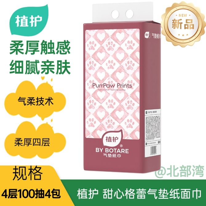 植护 甜心格蕾气垫纸面巾4层100抽4包/提四层设计厚实亲肤